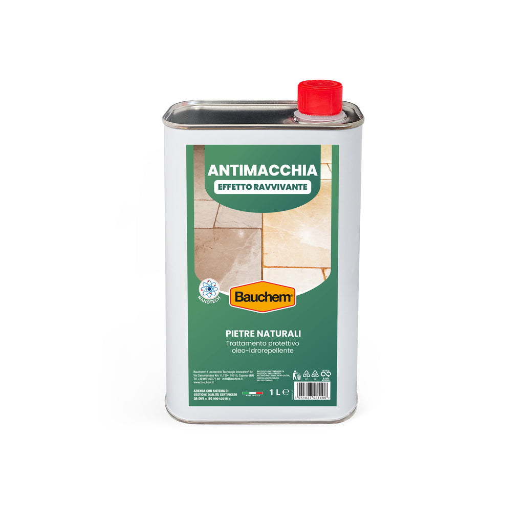 Innovativo trattamento protettivo impregnante antimacchia oleo-idrorepellente, con effetto ravvivante, basato sulla nanotecnologia, che penetra in profondità nel materiale, proteggendolo da macchie e sporco di natura acquosa e oleosa, e agevola la pulizia ordinaria delle superfici trattate.