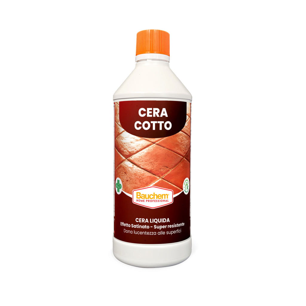 Pulire e asciugare bene la superficie prima dell’applicazione. Diluire CERA COTTO nella misura dal 5 al 20% con acqua e stendere uniformemente sulla superficie da trattare e lasciare asciugare per circa 6/8 ore.