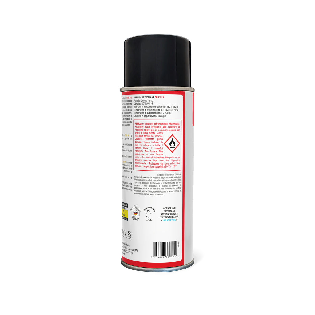 - Reagendo col il liquido penetrante presente nelle fessure, CRIK N3 segnala all’utilizzare in modo chiaro ed inequivocabile i difetti della superficie, consentendo l’intervento di correzione.