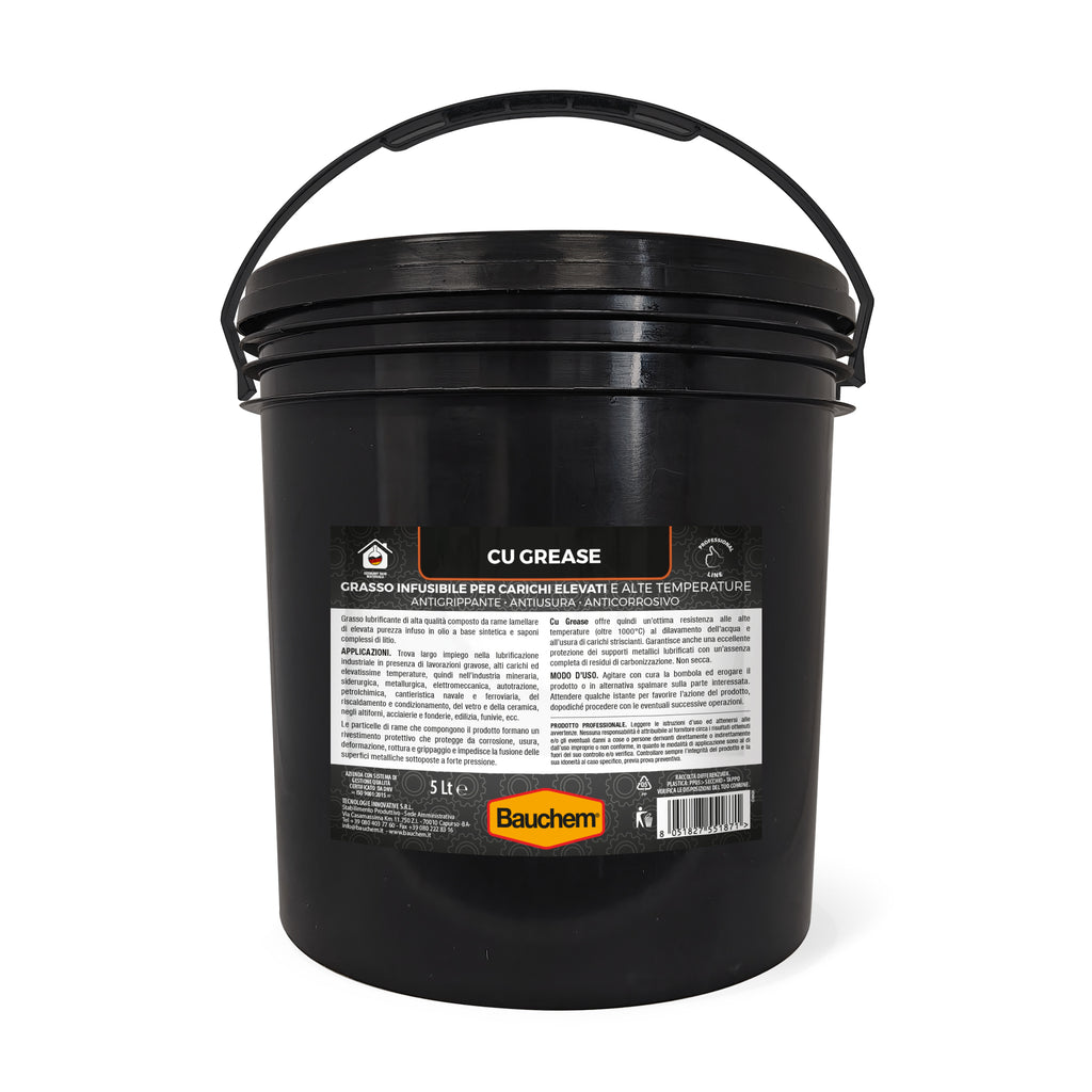 Grasso lubrificante di alta qualità, dall’aspetto pastoso, composto da rame lamellare di elevata purezza infuso in olio base sintetico e saponi complessi ispessenti. Offre un’ottima resistenza alle alte temperature (oltre 1000°C) al dilavamento dell’acqua e all’usura di carichi striscianti. Garantisce anche una eccellente protezione dei supporti metallici lubrificati con un’assenza completa di residui di carbonizzazione.