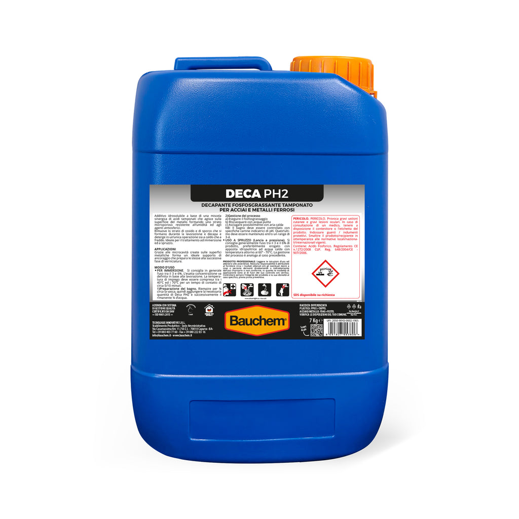 Riempire per ¾ circa la vasca, quindi aggiungere la necessaria quantità di Deca Ph2 e successivamente il rimanente ¼ d’acqua.