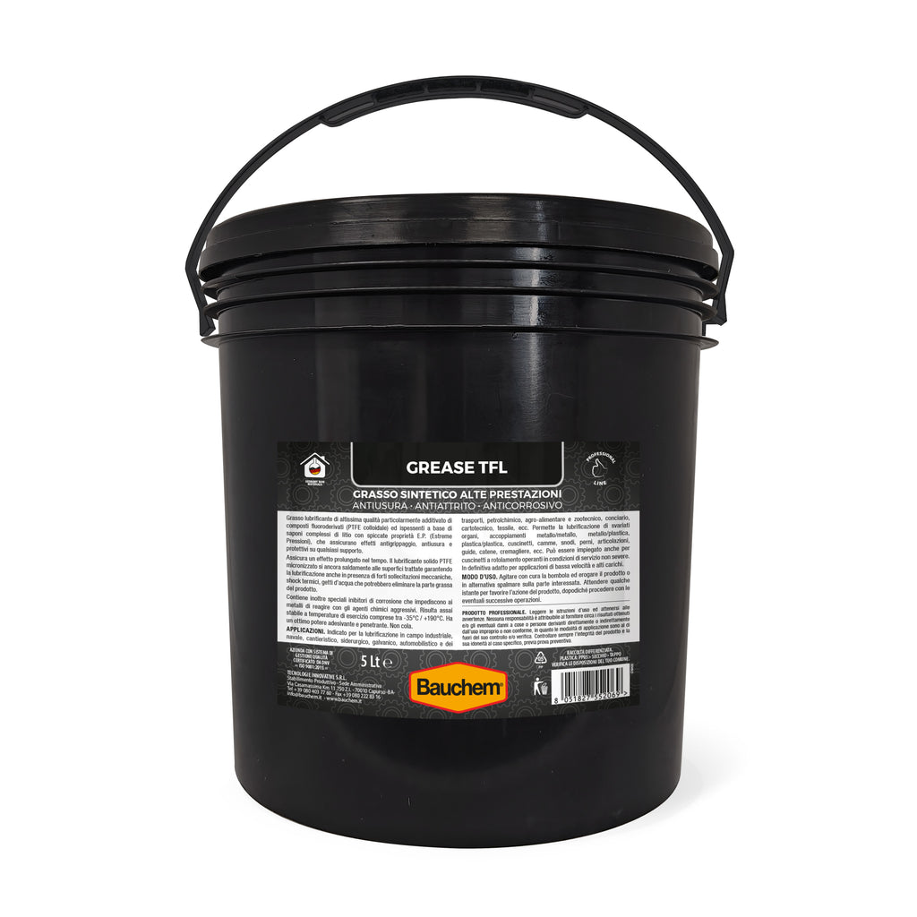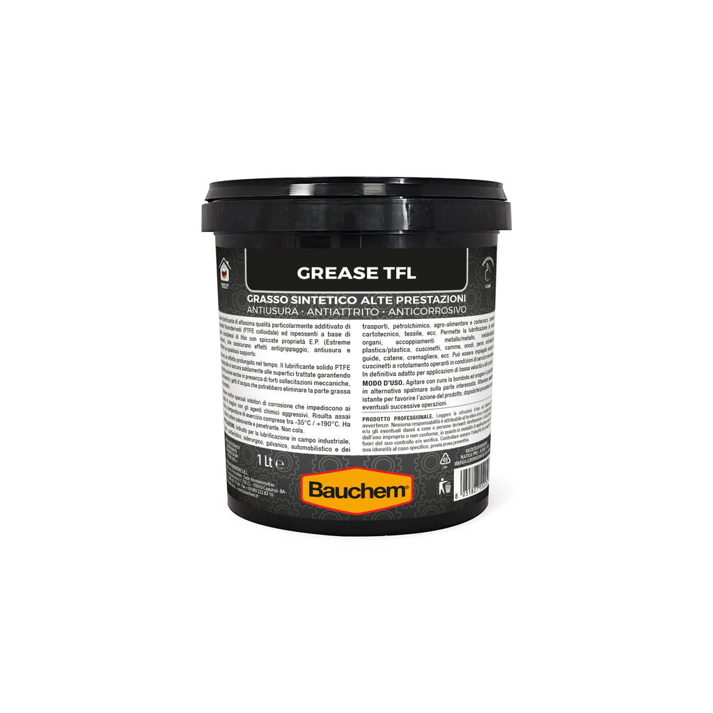 Grasso lubrificante di altissima qualità, particolarmente additivato di composti fluoroderivati (PTFE colloidale) ed ispessenti a base di saponi complessi di litio con spiccate proprietà E.P. (estreme pressioni), che assicurano effetti antigrippaggio, antiusura e protettivi su qualsiasi supporto, con esiti particolarmente prolungati nel tempo. Il lubrificante solido PTFE micronizzato si ancora saldamente alle superfici trattate garantendo la lubrificazione anche in presenza di forti sollecitazioni meccaniche, shock termici e getti d’acqua, che potrebbero eliminare la parte grassa del prodotto. Contiene inoltre speciali inibitori di corrosione che impediscono ai metalli di reagire con gli agenti chimici aggressivi. Risulta assai stabile a temperature di esercizio comprese tra -35° C/+190° C, non cola, ha un ottimo potere adesivante e penetrante.