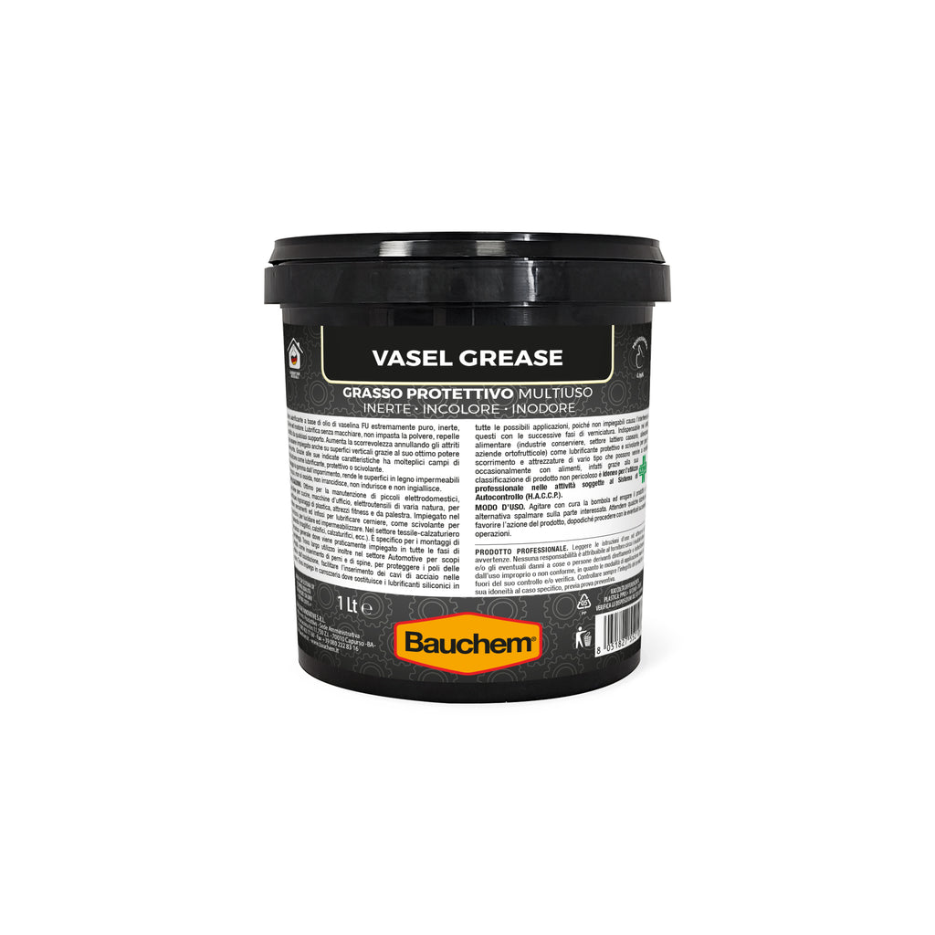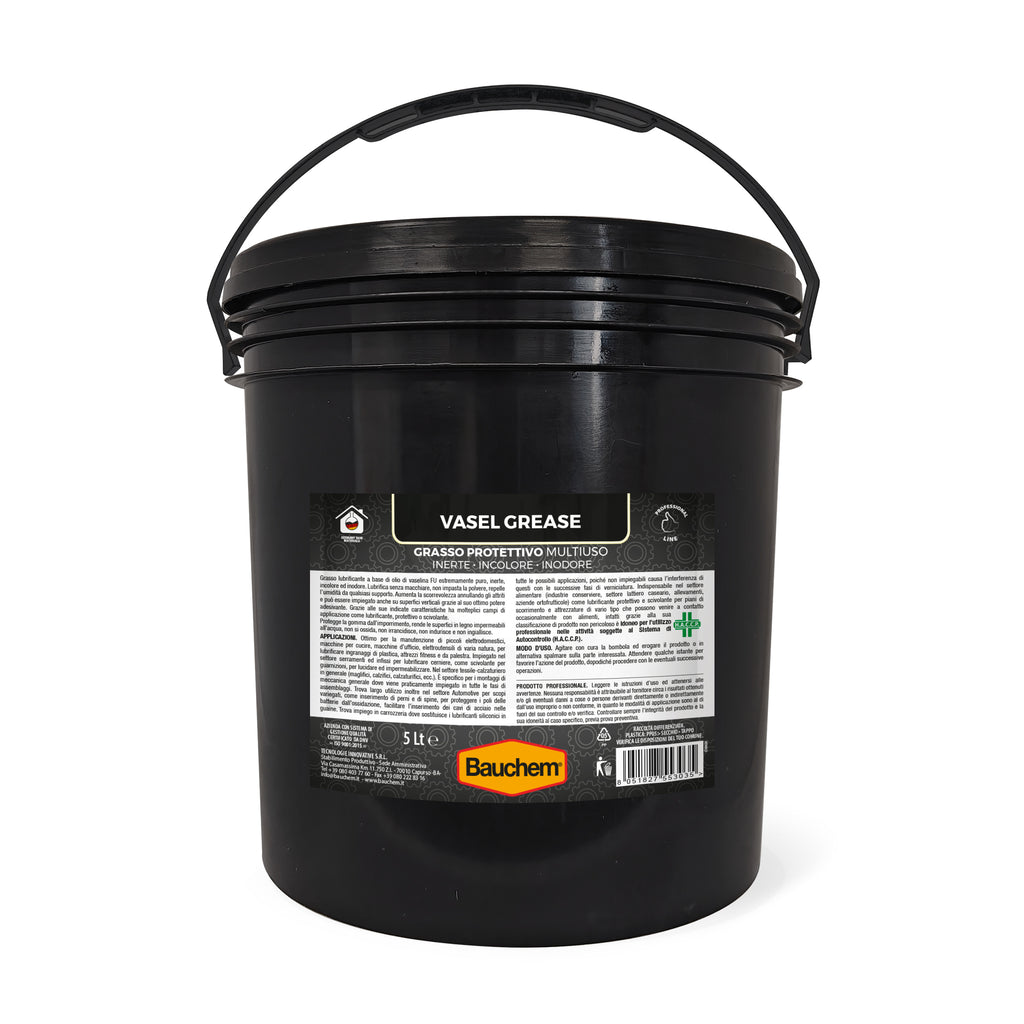 Grasso lubrificante a base di olio di vaselina estremamente puro, inerte, incolore ed inodore.